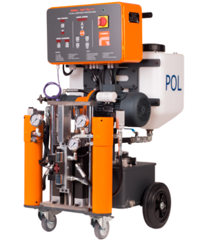 Передовий та компактний дизайн, простий у використанні портативний агрегат з пневматичним приводом. Унікальна конфігурація резервуарів для продукту, розміщених на шасі з колесами забезпечує легкий доступ до всіх типів робочих зон, а також виняткову мобільність. Електрична консоль має лише один перемикач управління, що дозволяє легко працювати без необхідності залучення кваліфікованого персоналу та економити час при налаштуванні та застосуванні.